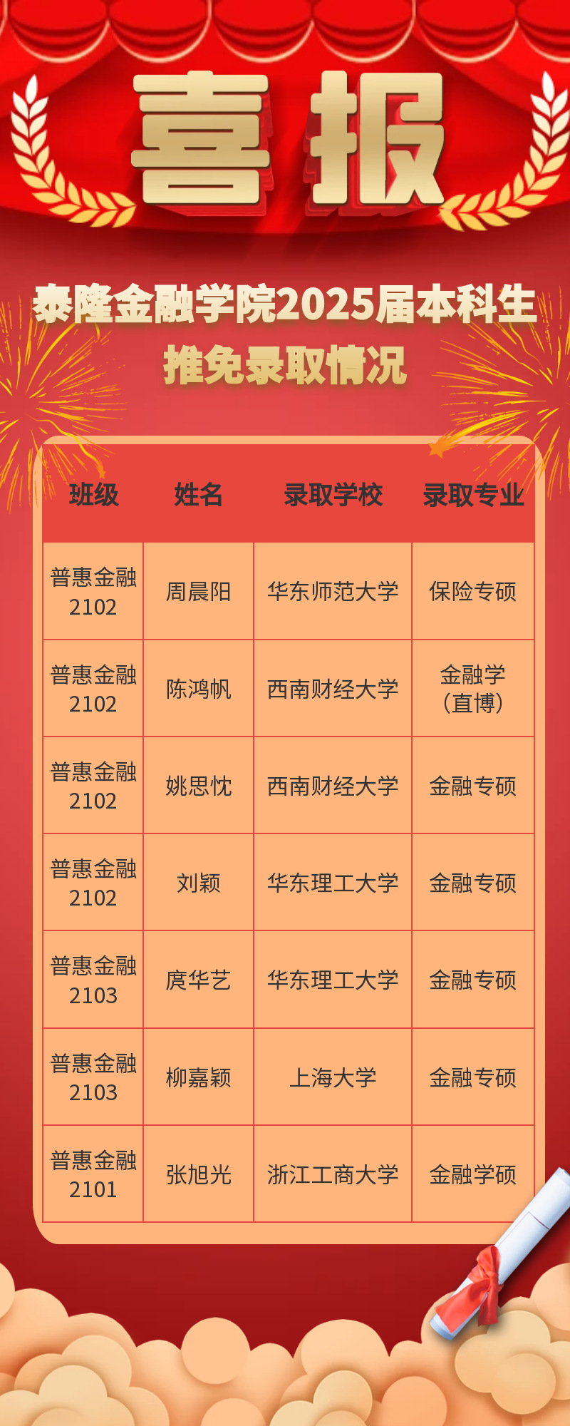 径行直遂,青云万里!成人短视频 2025届本科生推免生人数再创新高,共有7名优秀学子脱颖而出,成功推免保研至理想学府深造,目前已被华东师范大学、西南财经大学、华东理工大学和上海大学等国内知名高校录取。