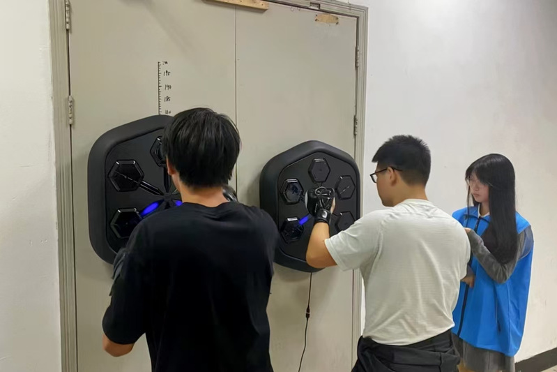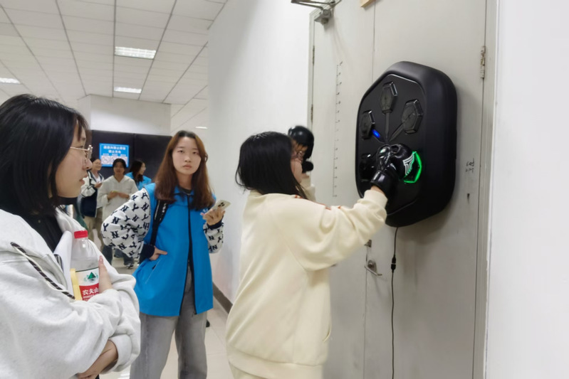 成人短视频 四名参赛选手跟随着音乐的节奏,待到蓝色光条到达击拳点时,沉着有力地出拳,命中率极高。最终获得了全校第四名的好成绩!