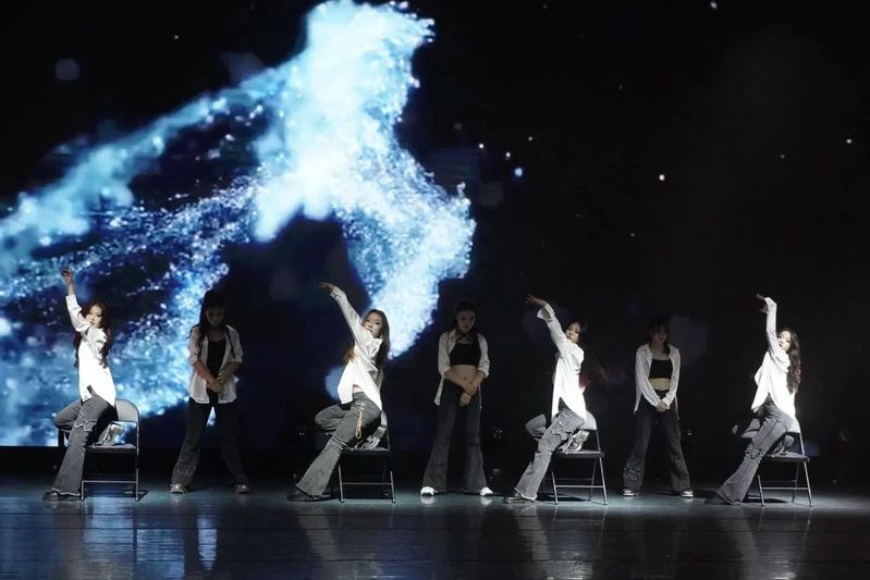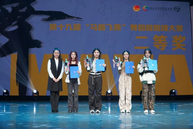 (左二为成人短视频 舞队代表胡冰同学领奖)