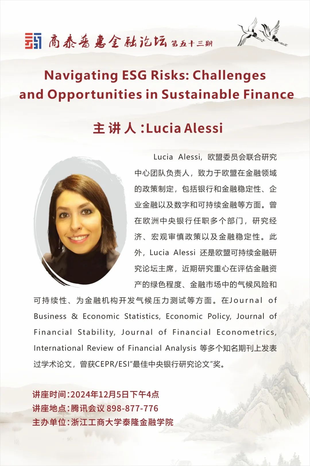 讲座预告|Navigating ESG:Challenges & Ops in Sustainable Finance